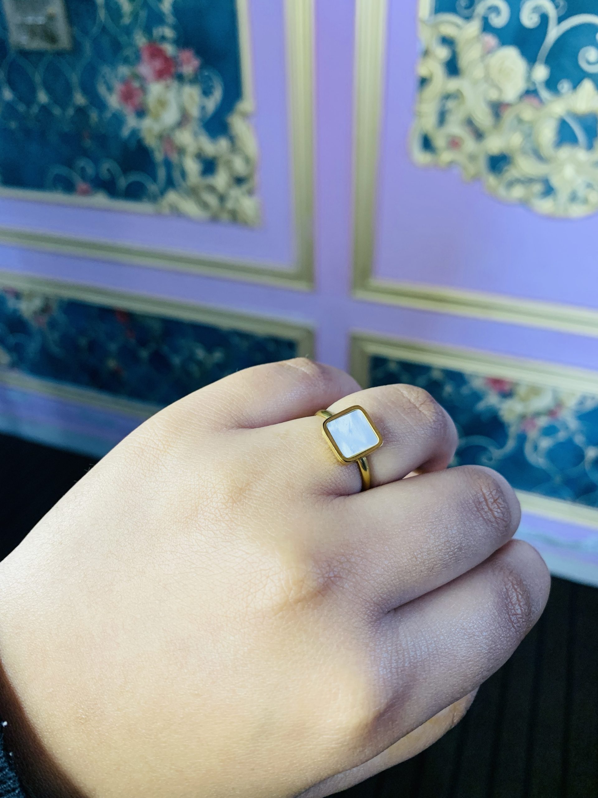 Stainless square white ring